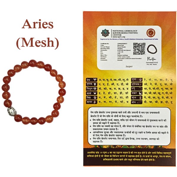 In Vedic astrology, Aries (Mesh Rashi) is ruled by the fiery planet Mars, which represents passion, ambition, and action. The Aries Mesh Rashi Bracelet is believed to resonate with these powerful planetary energies, making it a meaningful spiritual accessory for those seeking courage, motivation, and inner strength. Many devotees and spiritual practitioners wear such bracelets to maintain energetic balance and stay aligned with their zodiac’s natural strengths.